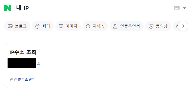 내 공인 IP는 네이버에서 내 아이피 확인 이라고 치면 나온다.