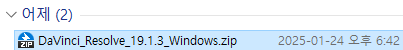 다운로드 받은 압축 파일을 풀어서 안에 있는 DaVinci_Resolve_19.1.3_Windows.exe 파일을 실행해주면 아래와 같은 창이 표시된다.