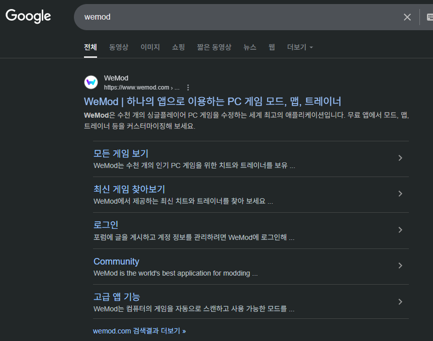 구글에 WeMod라고 쳐서 다운로드