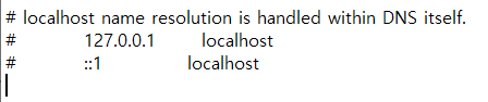 hosts 파일을 열어보면 기본적으로 127.0.0.1 localhost 라고 적혀있는 것을 볼 수 있다.