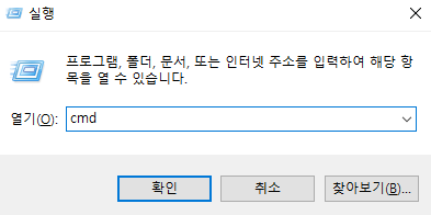 WIN + R 키를 입력하여 명령 실행 창에서 cmd를 입력하여 관리자 권한으로 실행 가능하다.