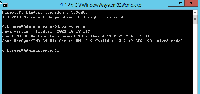 이후 java - version 명령어 사용하여 확인하니